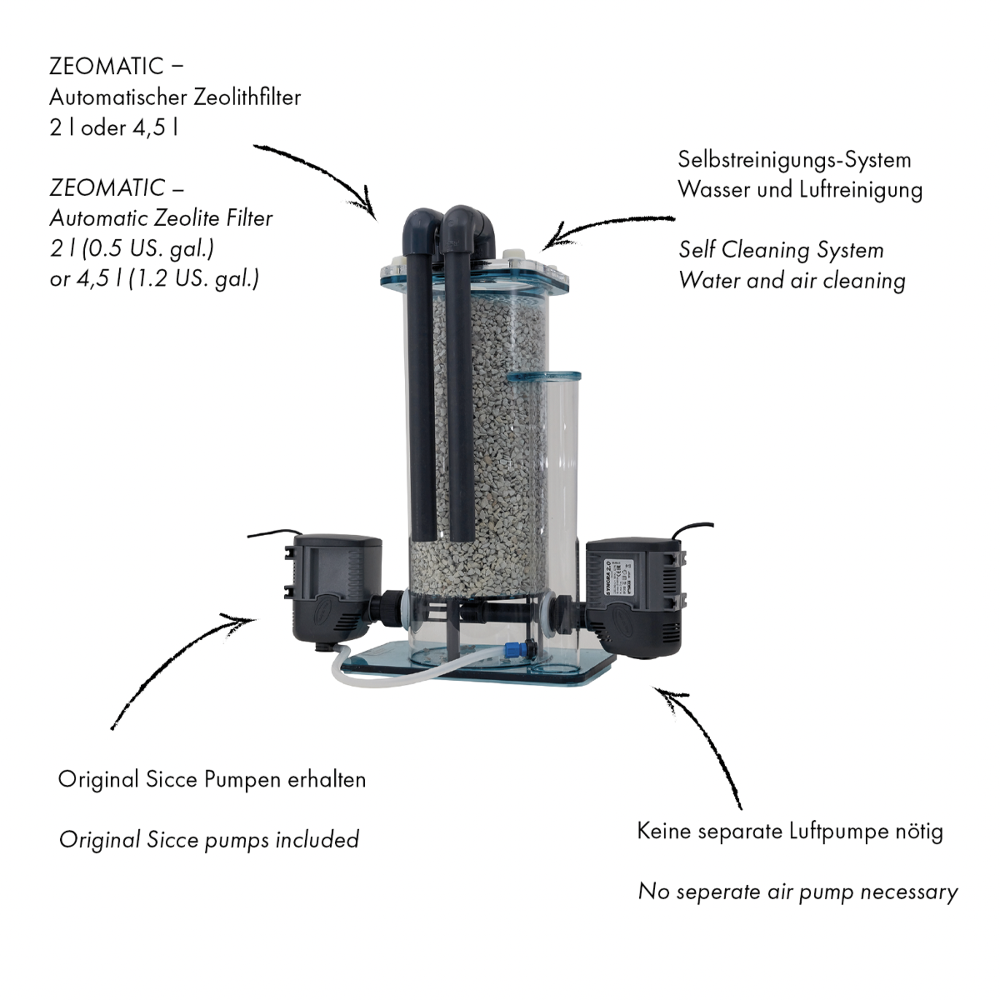 Mit dem Fauna Marin Zeomatic haben wir uns diesem Problem angenommen und ein automatisch arbeitendes Komplettsystem erarbeitet, dass die tägliche Reinigung des Zeolithes selbsttätig übernimmt.