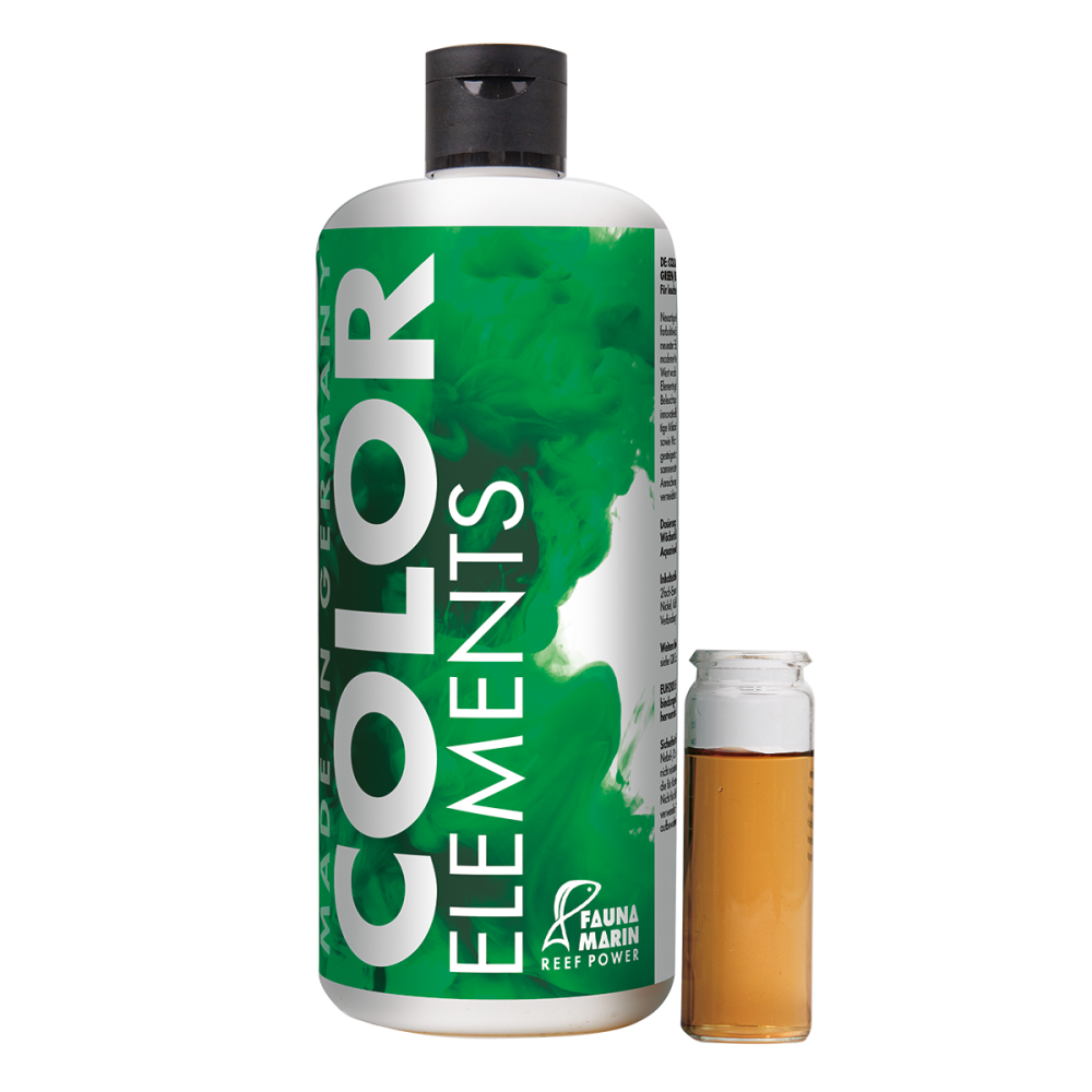 Neue Spurenelement-Mischung basierend auf organischen und anorganischen Mineralien und Elementen. Grün blau Komplex zur Ausarbeitung der grünen, gelben und türkiesen Farbtöne bei Korallen.