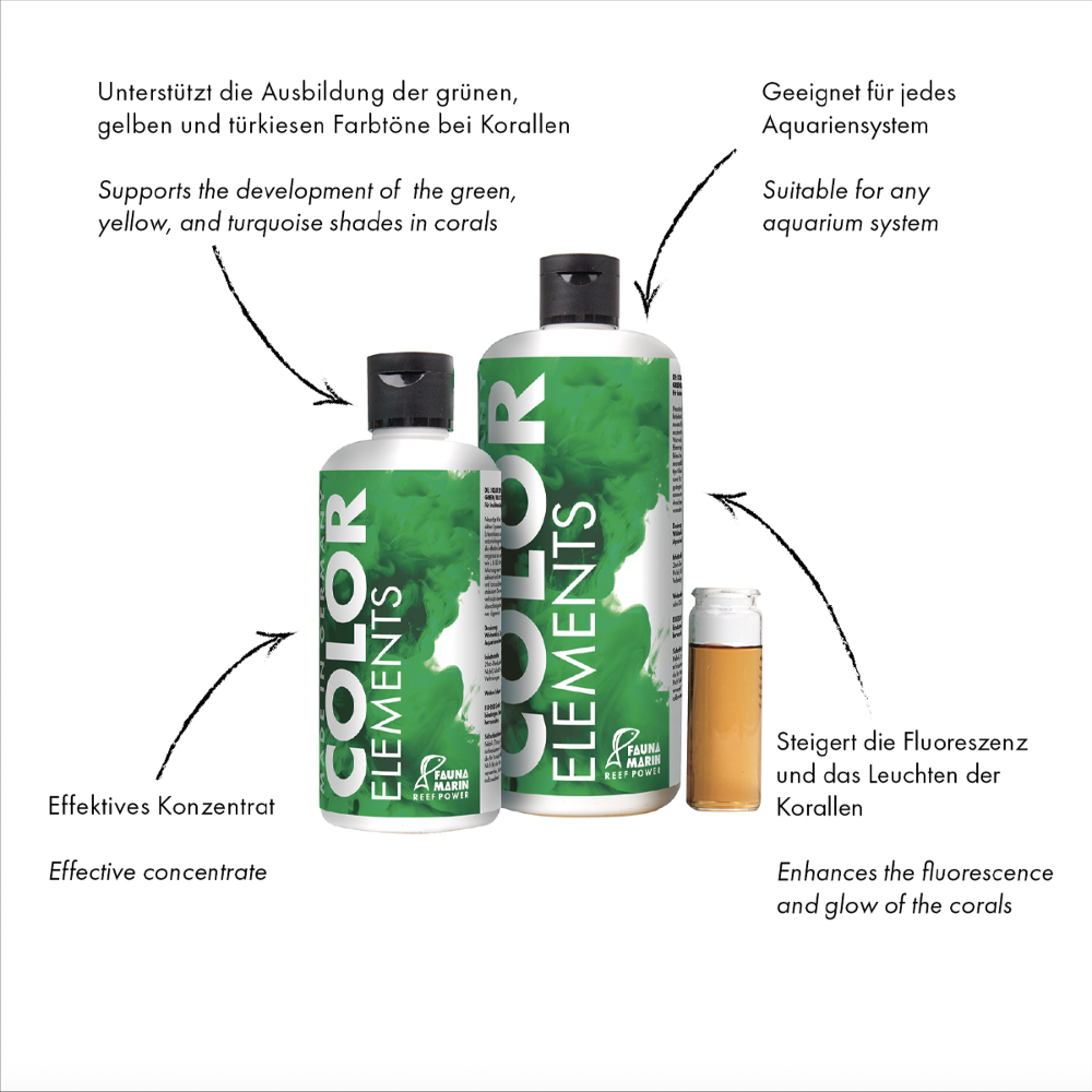 Neuartige Mischung wachstums- und farbaktiver Spurenelemente, basierend auf neuesten Erkenntnissen und angepasst an moderne Seesalz-Mischungen. Besonderen Wert wurde auf die effektive Umsetzung der Elemente, angepasst an moderne Beleuchtungssysteme wie z. B. LED, gelegt. Durch die innovative Zusammensetzung werden wichtige Mikronährstoffe aktiviert und stabilisiert, das Wachstum und die Farbausbildung deutlich gesteigert und stabilisiert.