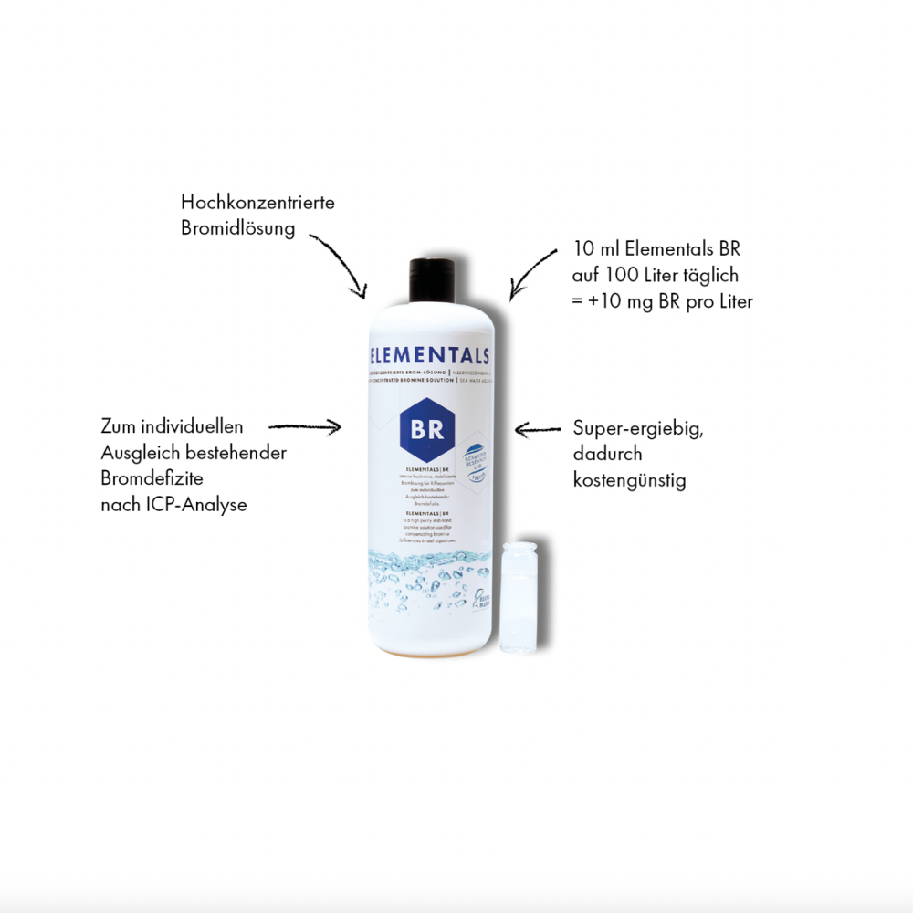 Elementals BR ist eine hochkonzentrierte Bromidlösung für Meerwasseraquarien zum individuellen Ausgleich bestehender Bromdefizite.