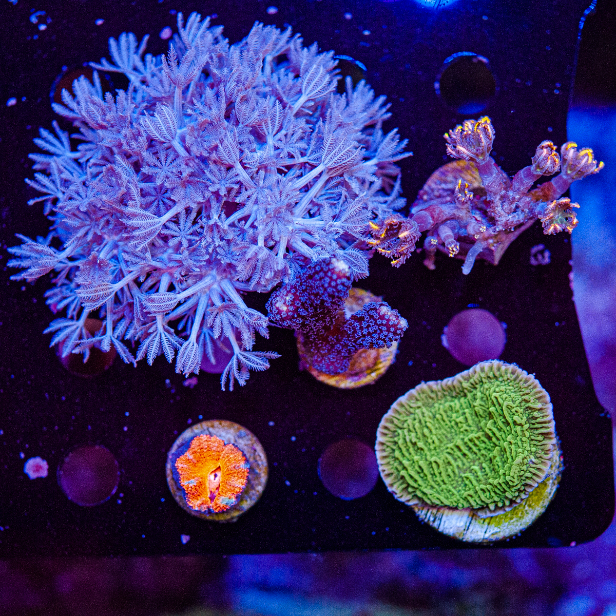 Je nach Verfügbarkeit erhaltet Ihr 5 unterschiedliche Korallen aus eigener Nachzucht, z.B. von: Sinularia, Sarcophyton, Lobophytum, Klyxum, Micromussa, Stylophora, Briareum und Montipora.