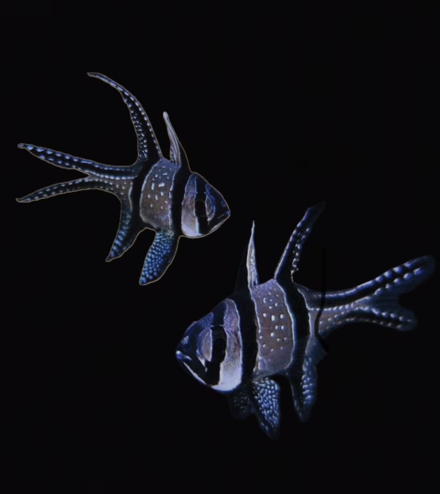 Pterapogon kauderni, auch bekannt als Kardinalbarsche oder Banggai-Kardinalfische, sind beliebte Meeresfischarten, die oft in Meerwasseraquarien gehalten werden.