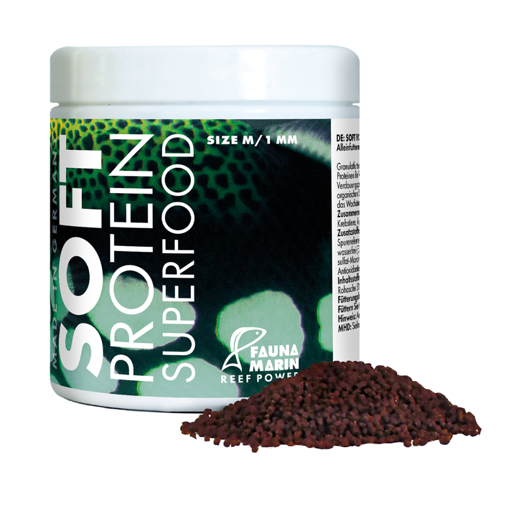 Fauna Marin Soft Protein Super Food ist ein Alleinfuttermittel für Korallenfische. Granulatfutter mit proteolytischen Eigenschaften.