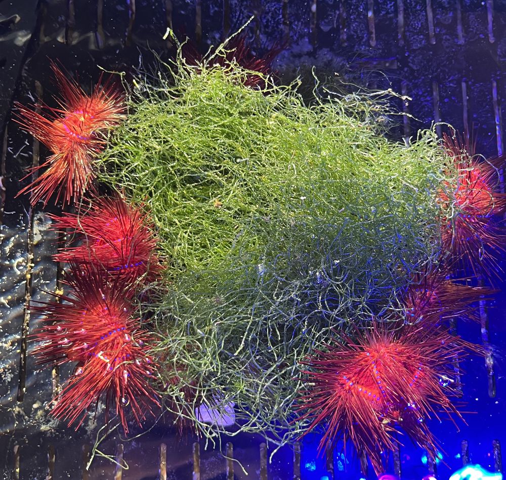 The Collector Sea Urchin mainly feeds on algae that grow on the surfaces in the aquarium. However, it is recommended to supplement its diet with seaweed sheets or specialized sea urchin food if there are not enough algae present.