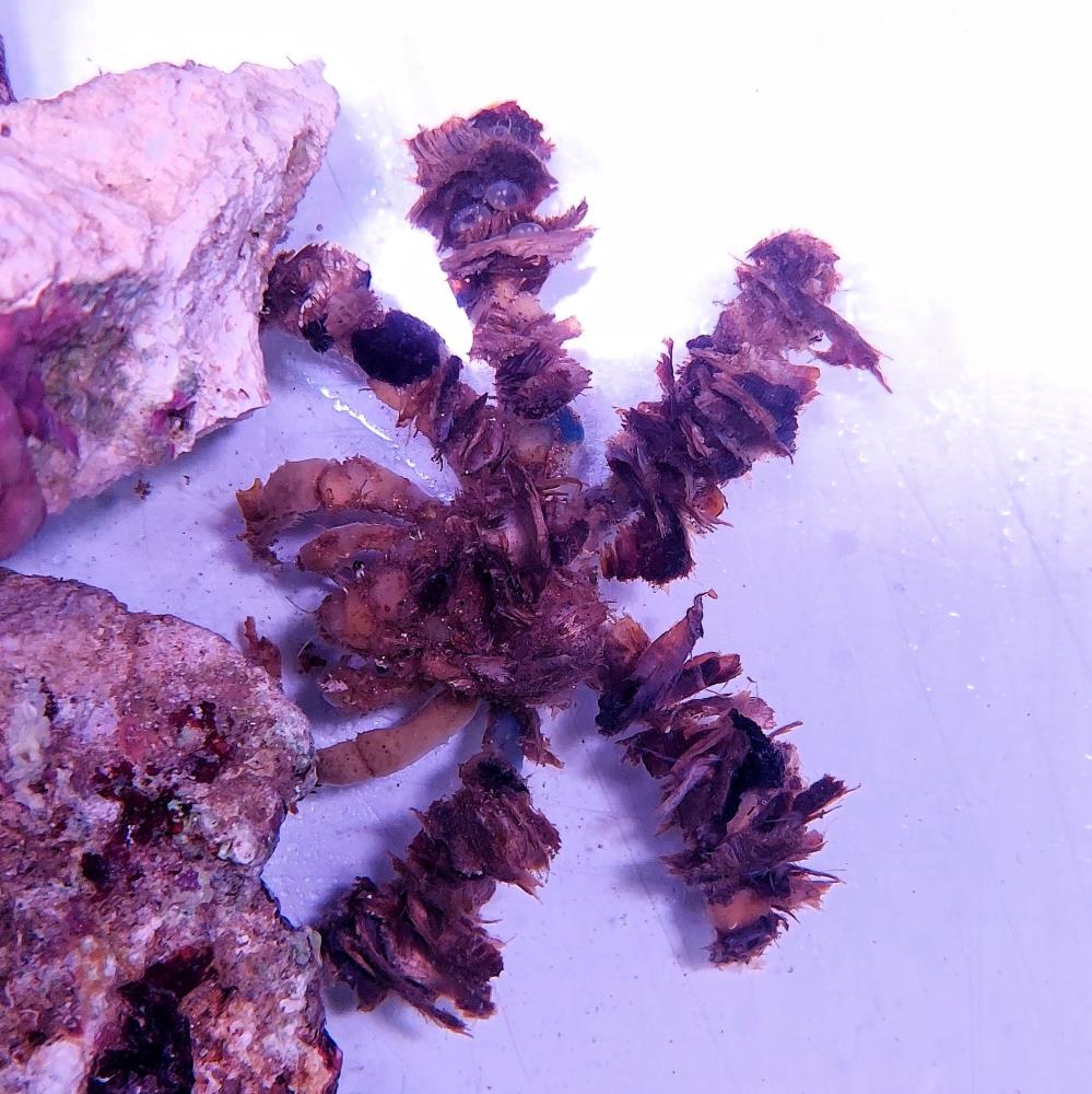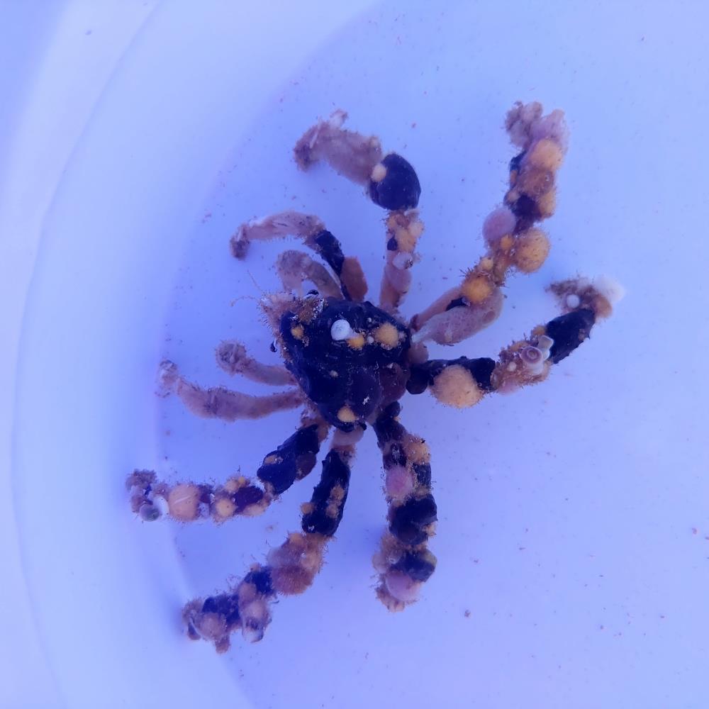 Fun Fact: The decorator crab is known for covering itself with anything it can find in its environment, including algae, sponges, and even small corals. This adaptation helps it protect itself from predators and survive in its habitat.