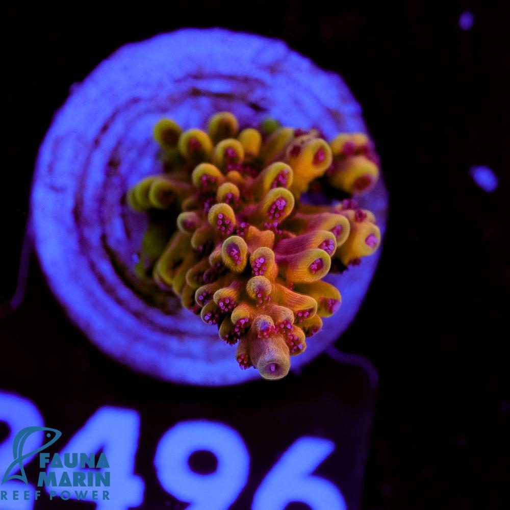 Please note that coral variations in form and color can occur in the original photo. Changes in color may also result from transport or due to the color representation on the computer screen . Our corals are lit with Radions G4 Pro and are photographed in these conditions. The colors of the animals may vary from our photos when placed in your aquarium, depending on the type of lighting used.