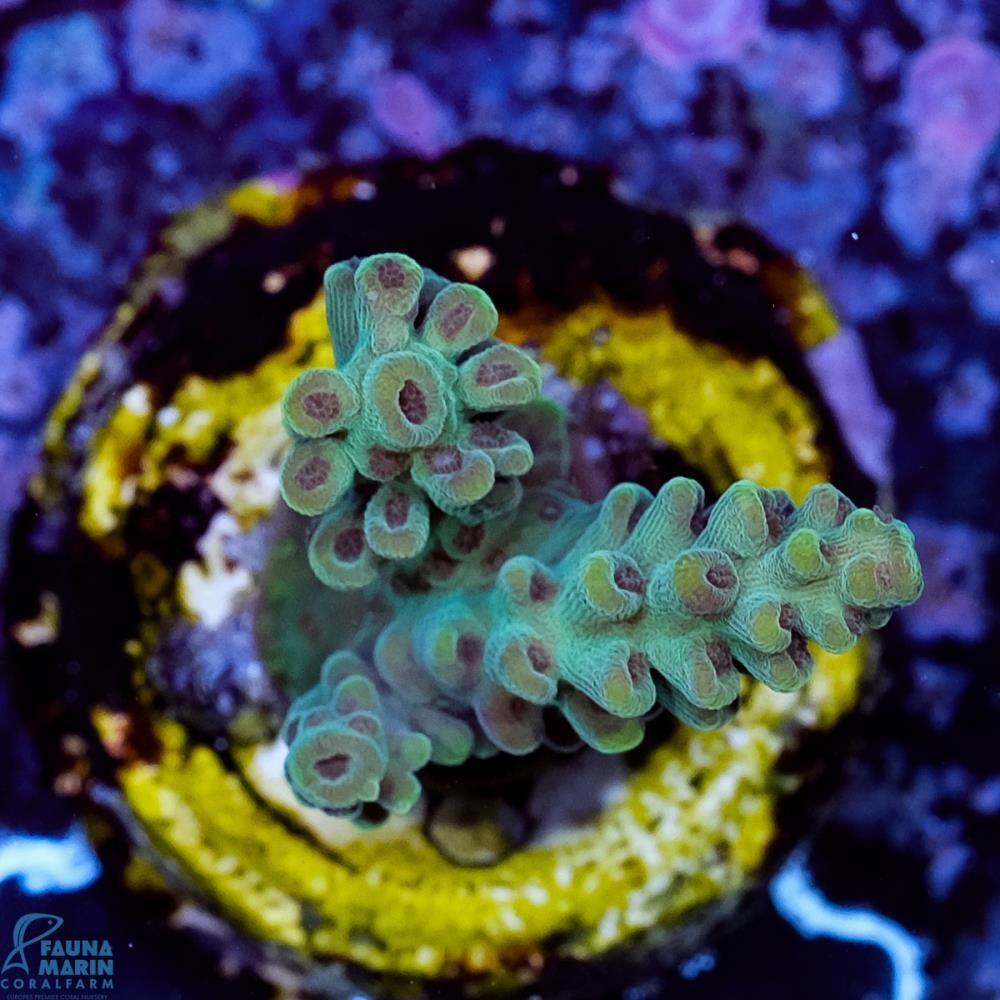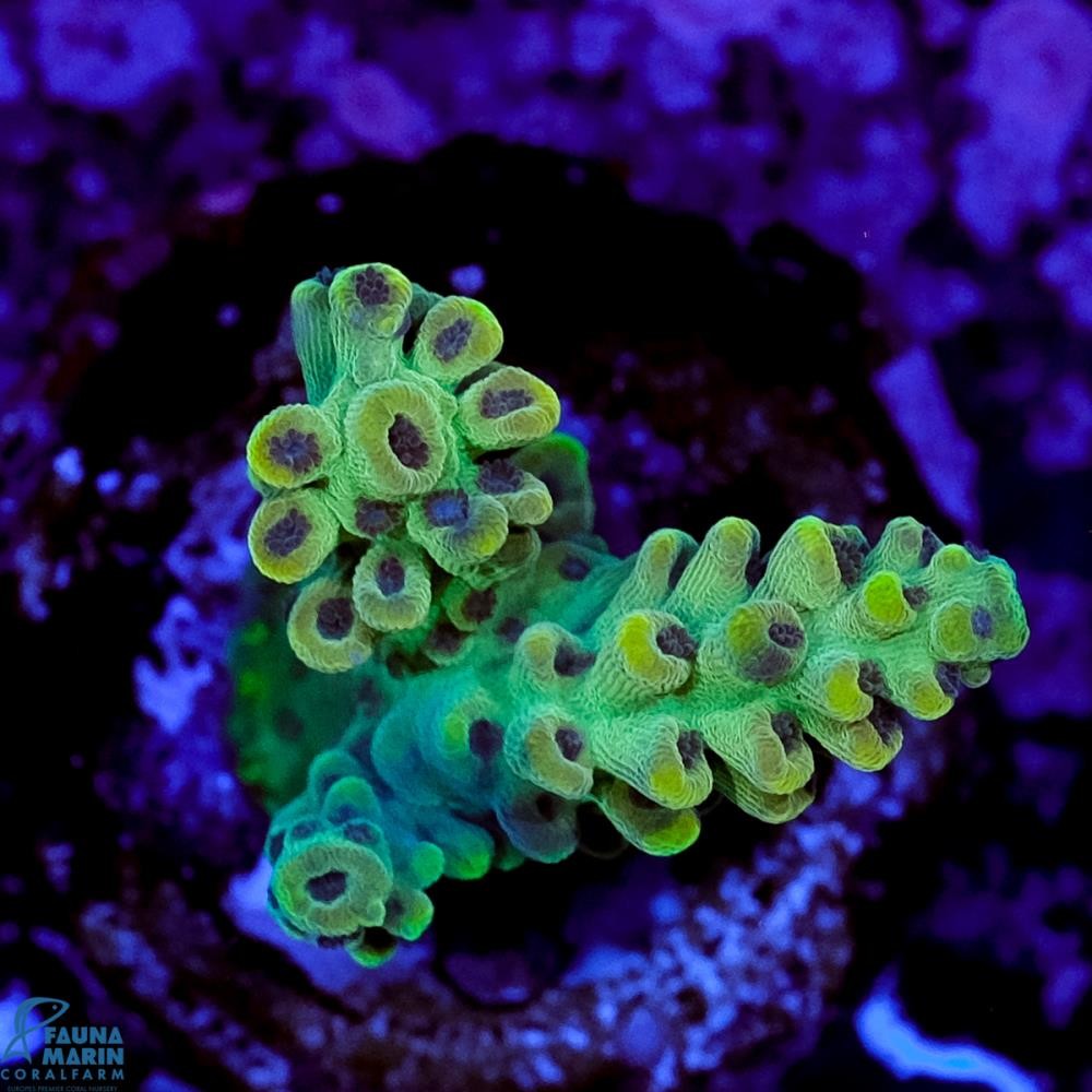 "FMC Coral Frags" Several branches from this coral are available. These animals differ only slightly in form. You will receive an offshoot similar to the animal depicted in the photo.