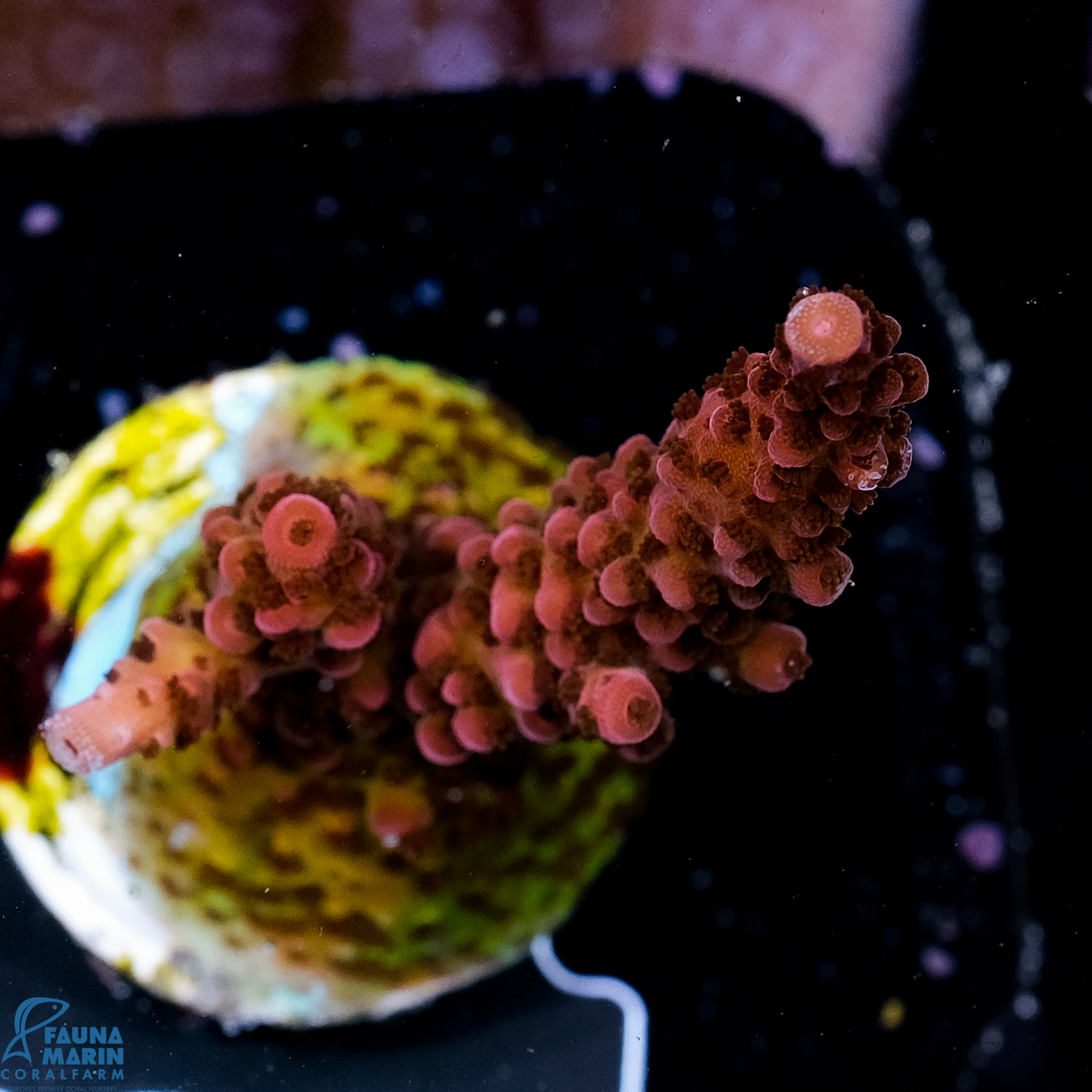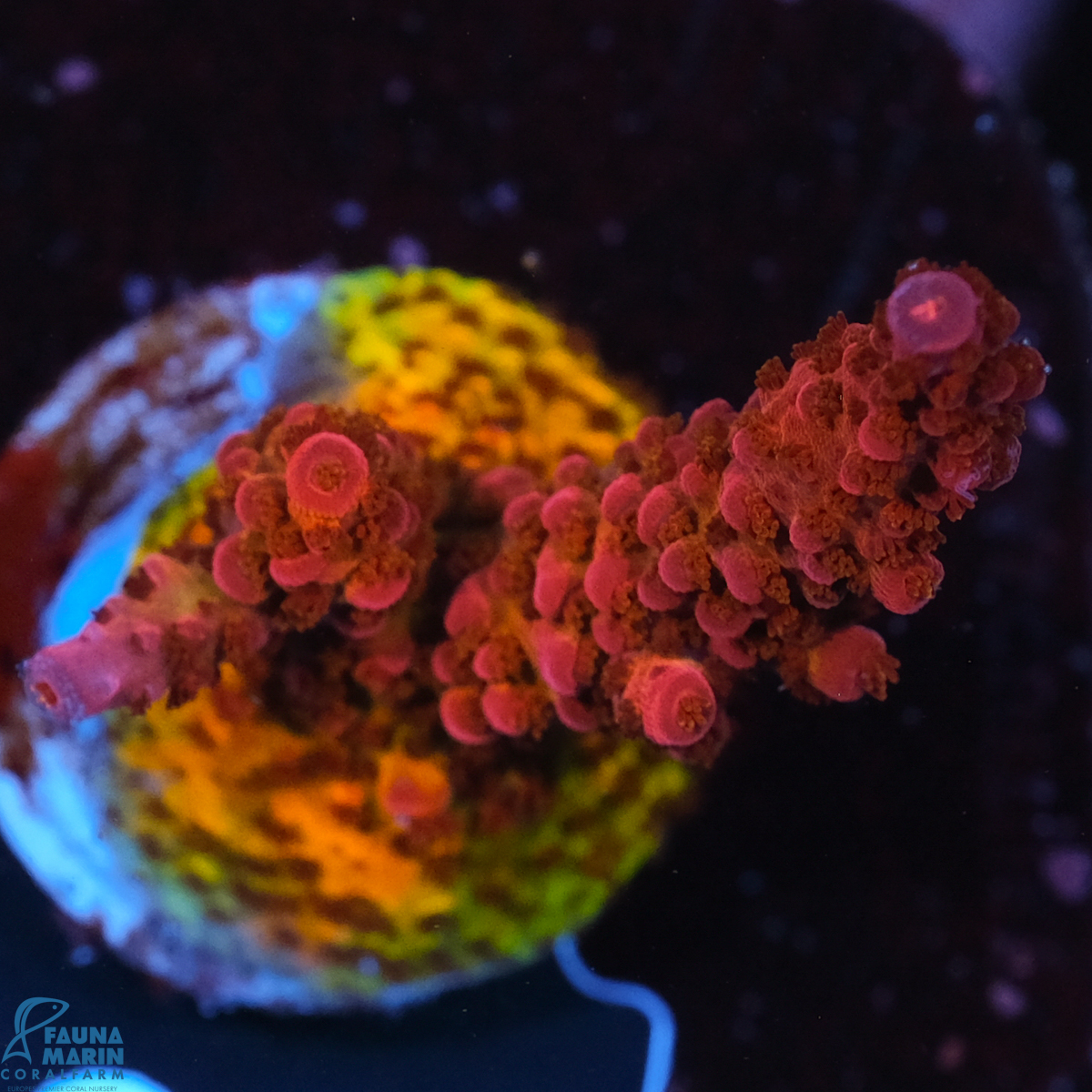 Please note that coral variations in form and color can occur in the original photo. Changes in color may also result from transport or due to the color representation on the computer screen . Our corals are lit with Radions G4 Pro and are photographed in these conditions. The colors of the animals may vary from our photos when placed in your aquarium, depending on the type of lighting used.