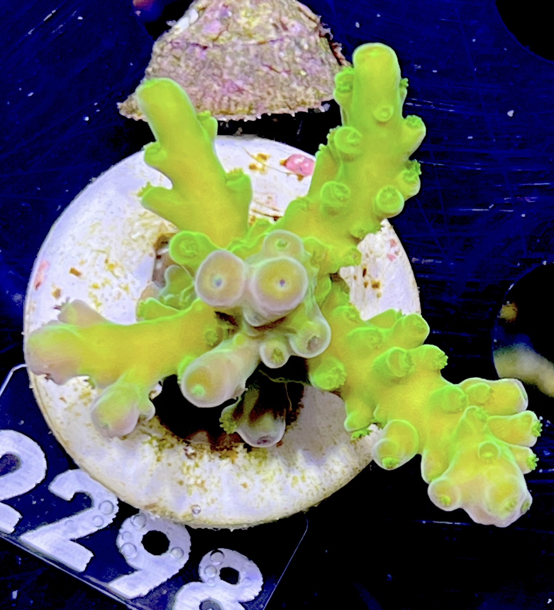 To make sure you get exactly the coral you want, every single coral is photographed by us. And usually once under daylight illumination and once under blue light.