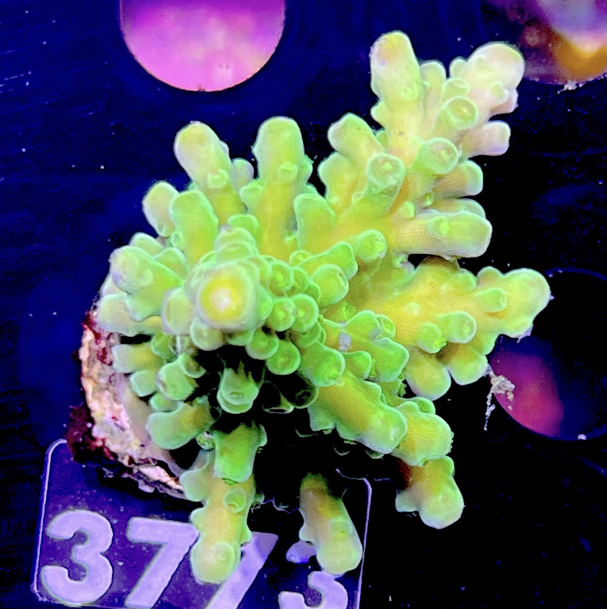 To make sure you get exactly the coral you want, every single coral is photographed by us. And usually once under daylight illumination and once under blue light.