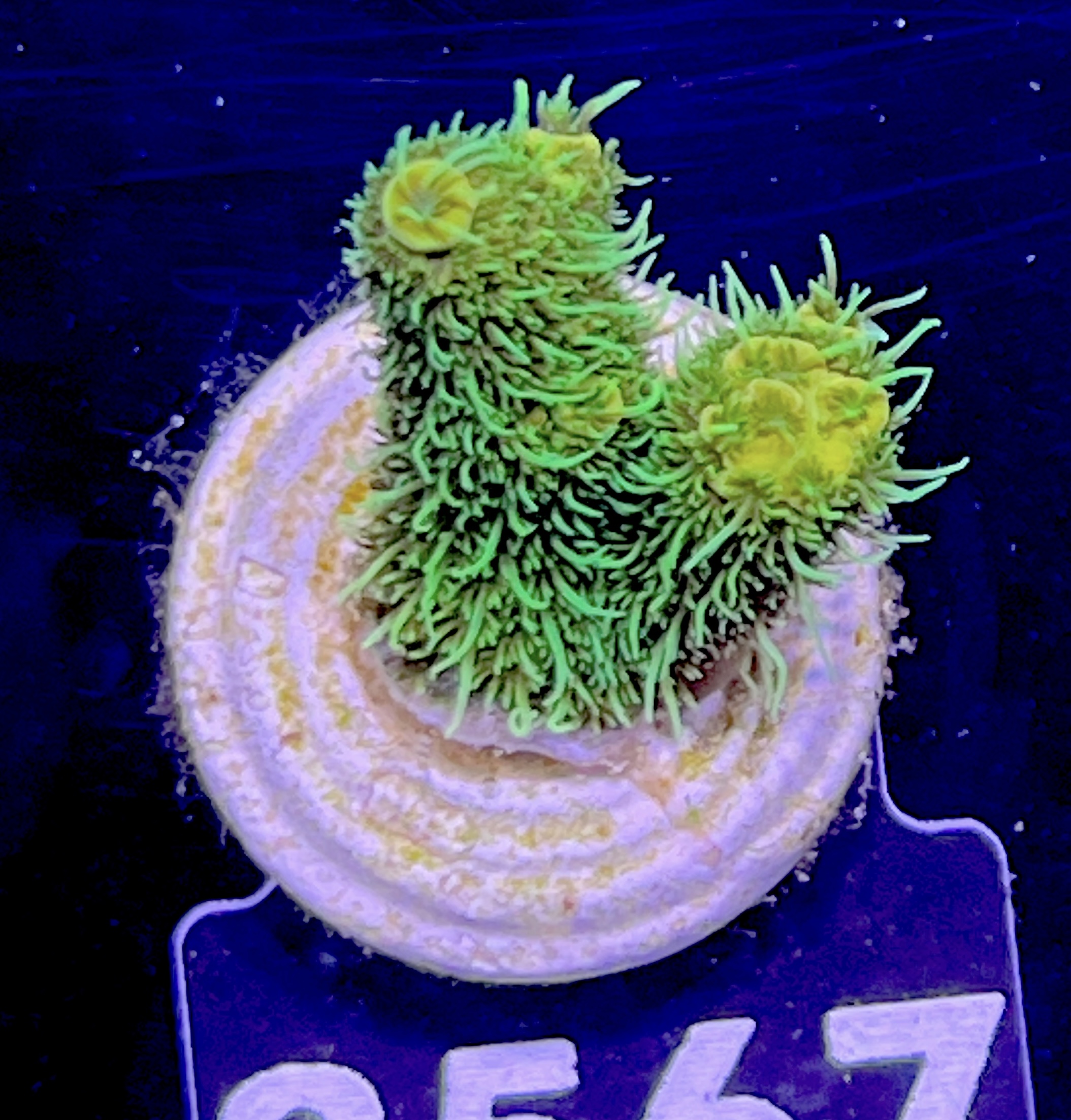To make sure you get exactly the coral you want, every single coral is photographed by us. And usually once under daylight illumination and once under blue light.