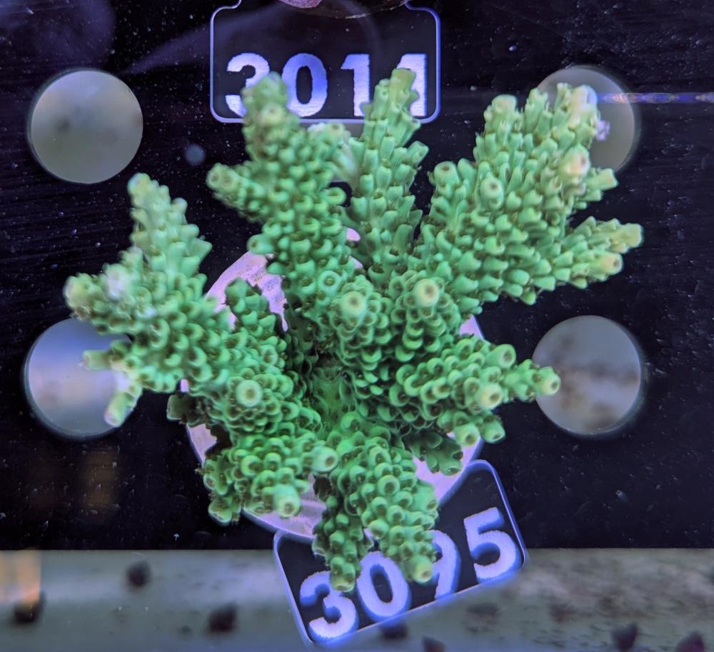 To make sure you get exactly the coral you want, every single coral is photographed by us. And usually once under daylight illumination and once under blue light.