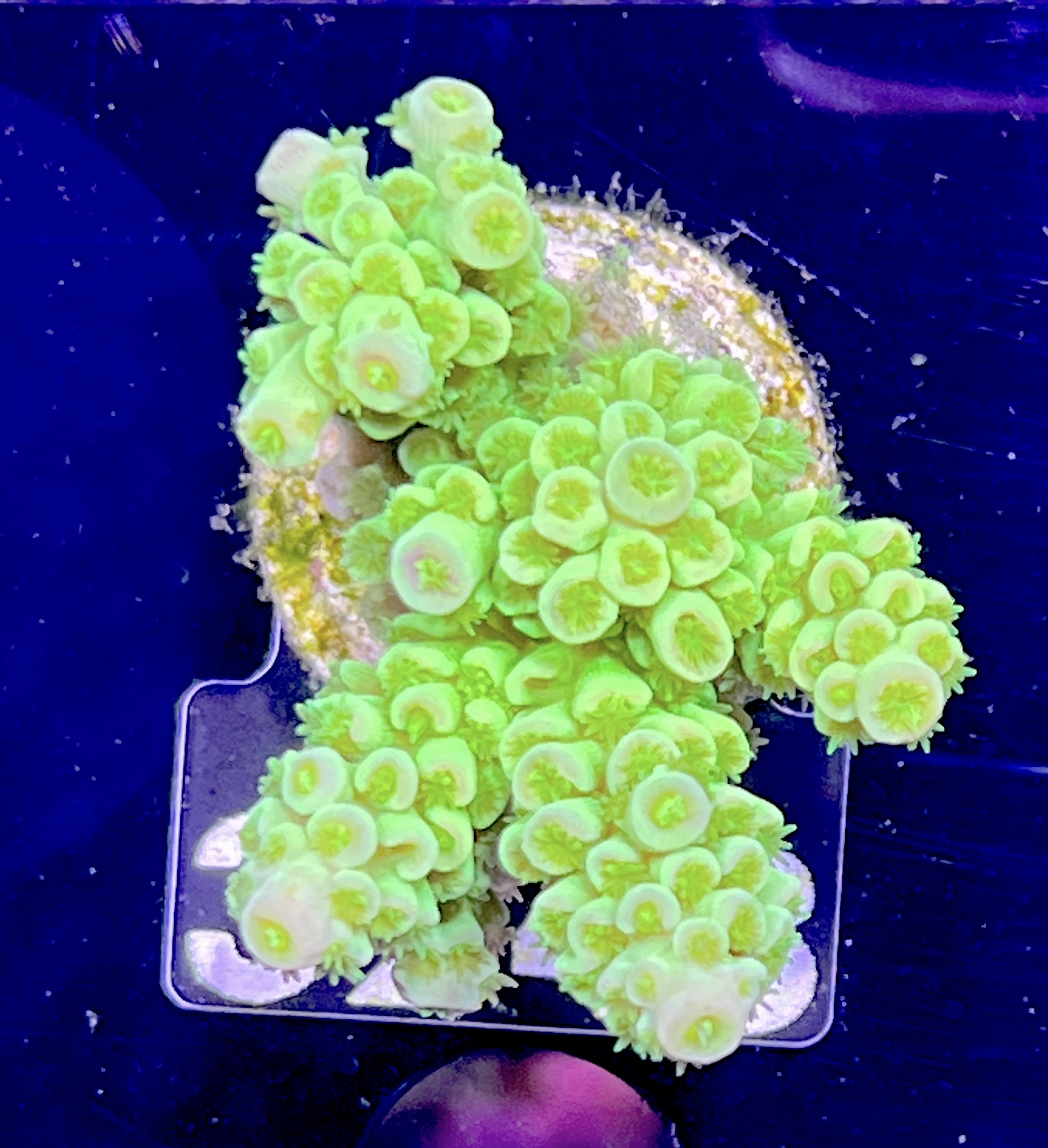 Please note that coral variations in form and color can occur in the original photo. Changes in color may also result from transport or due to the color representation on the computer screen . Our corals are lit with Radions G4 Pro and are photographed in these conditions. The colors of the animals may vary from our photos when placed in your aquarium, depending on the type of lighting used.