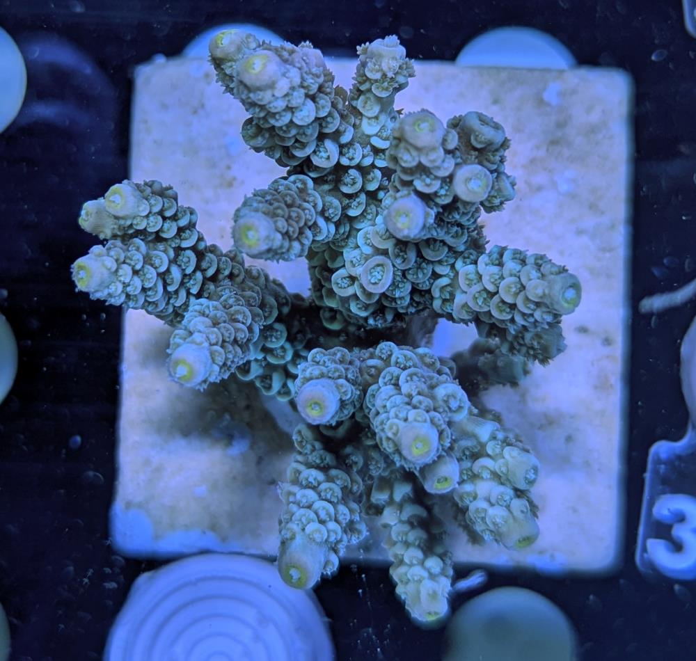 To make sure you get exactly the coral you want, every single coral is photographed by us. And usually once under daylight illumination and once under blue light.