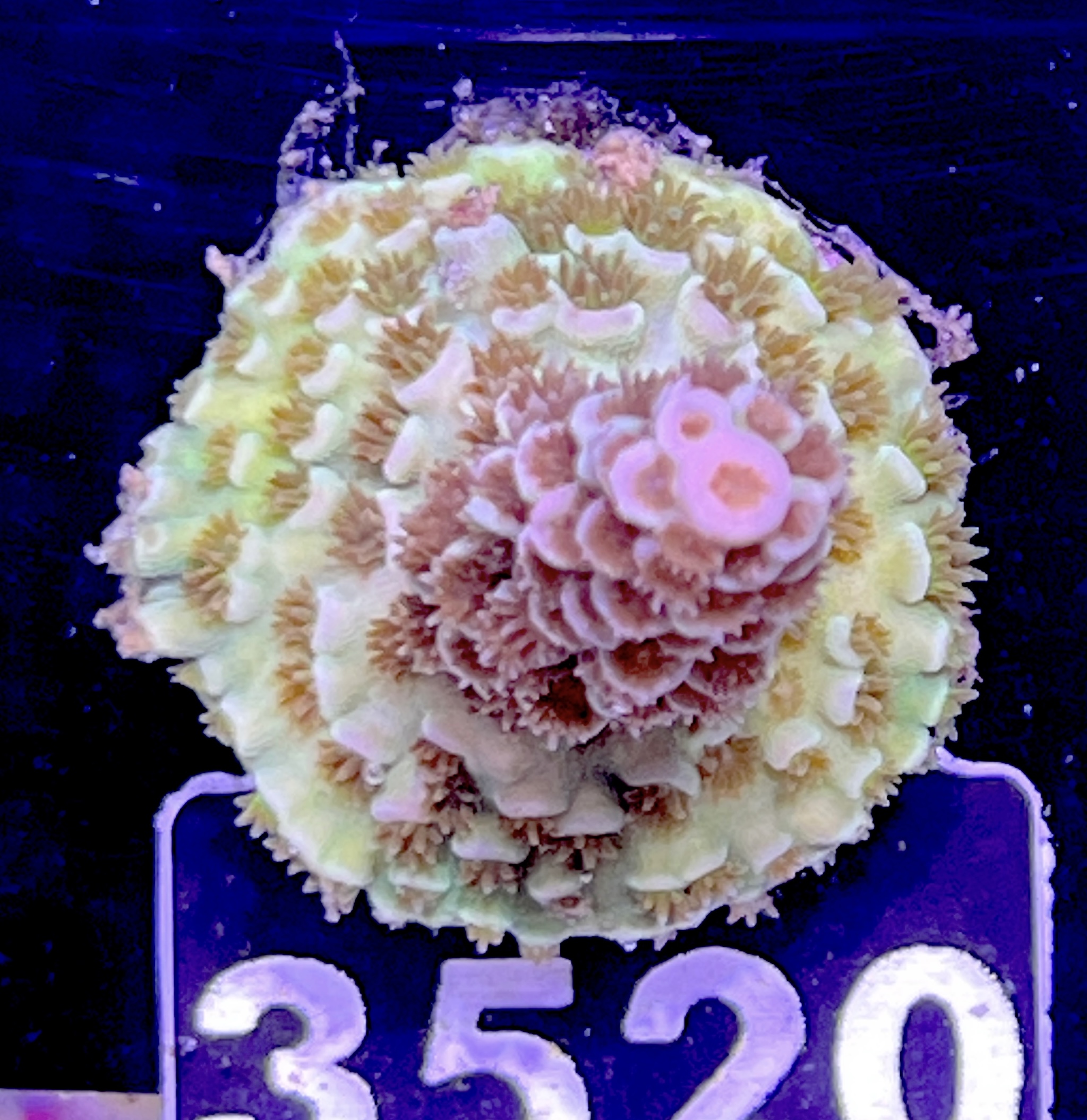 To make sure you get exactly the coral you want, every single coral is photographed by us. And usually once under daylight illumination and once under blue light.