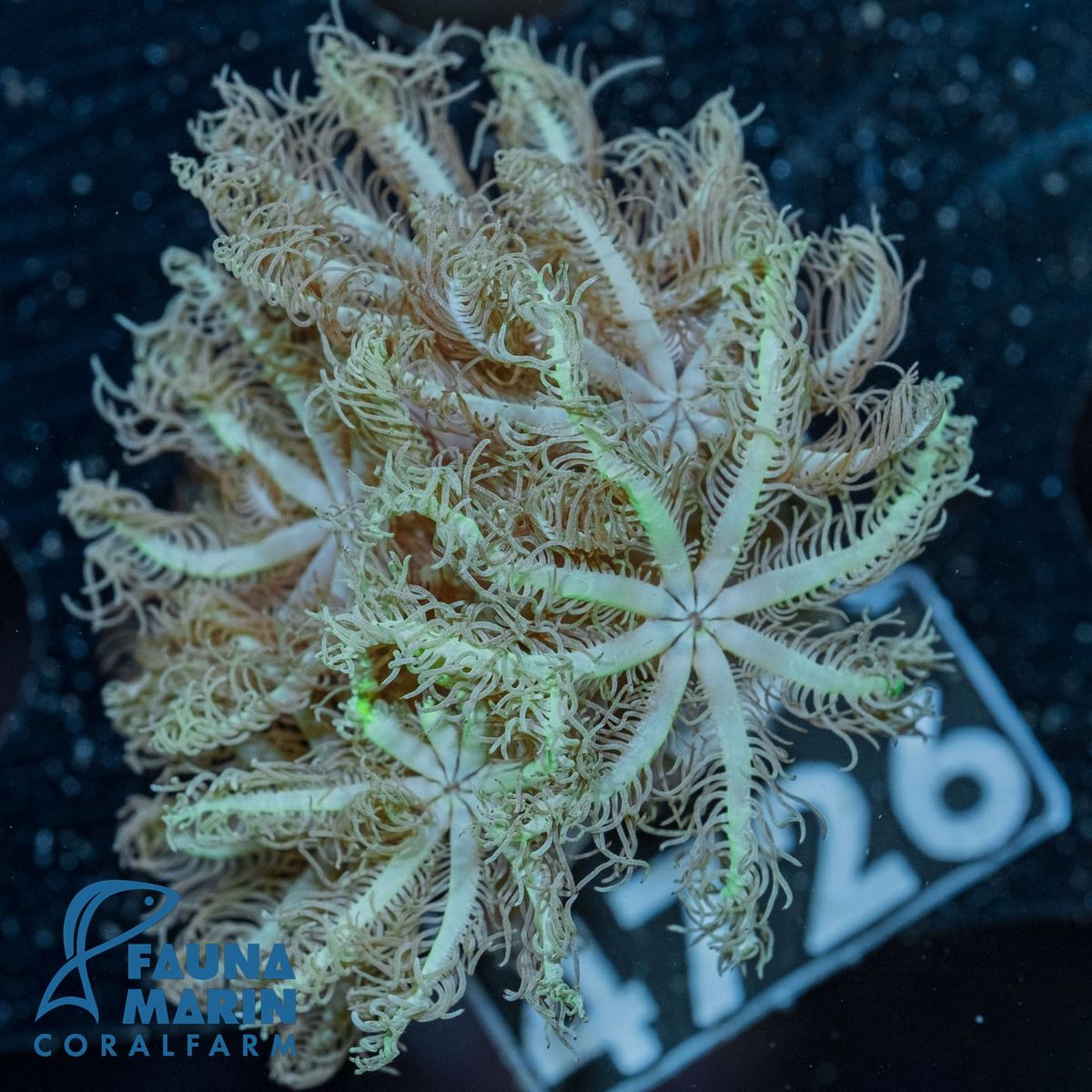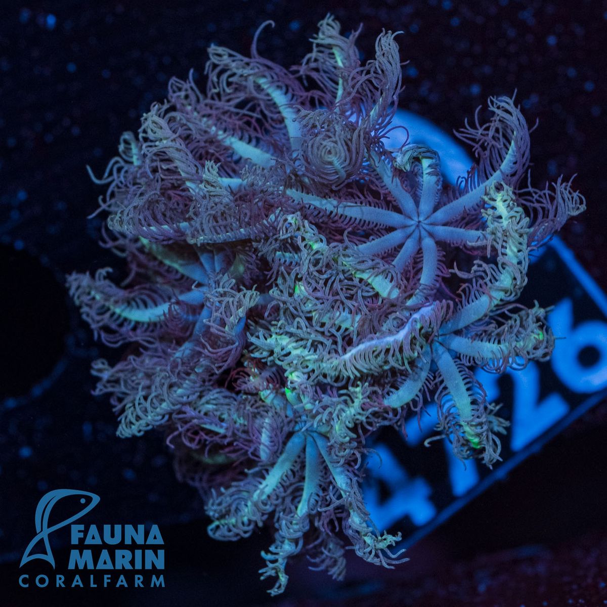 Please note that coral variations in form and color can occur in the original photo. Changes in color may also result from transport or due to the color representation on the computer screen . Our corals are lit with Radions G4 Pro and are photographed in these conditions. The colors of the animals may vary from our photos when placed in your aquarium, depending on the type of lighting used.