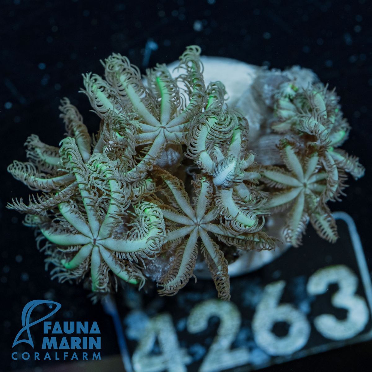 "FMC Coral Frags" Several branches from this coral are available. These animals differ only slightly in form. You will receive an offshoot similar to the animal depicted in the photo.
