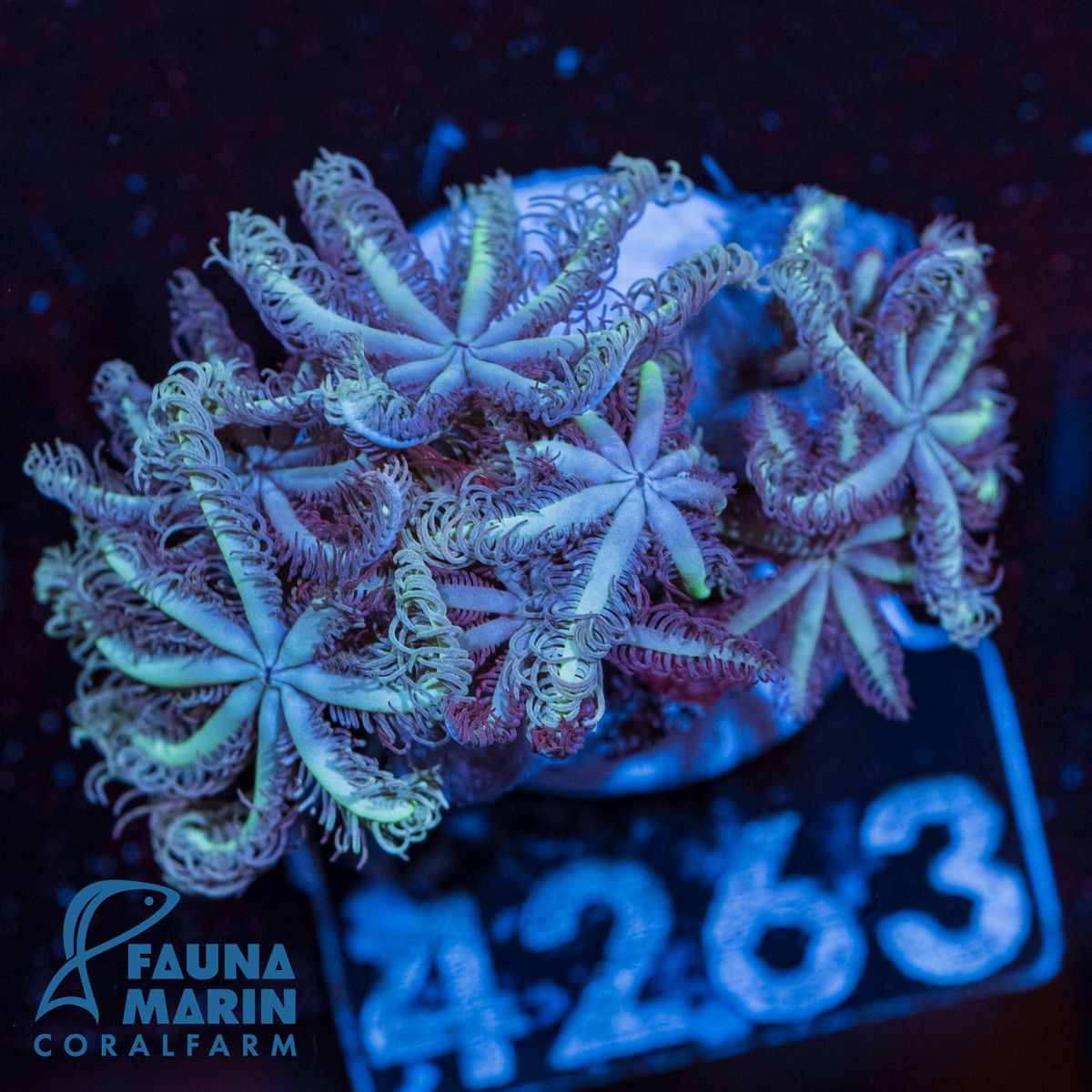 We take great care to ensure the well being of all our corals. Before pieces are deemed saleable, we wait for every piece to have formed an encrusting edge and even develop baby polyps. As a professional supplier of quality frags in Germany, we differ significantly from our competitors. Our care and breeding practices for these wonderful corals make it possible to bring you the healthiest pieces available. The biggest difference, is in the regular feeding of the polyps; we feed LPS Grow and Color Food from Fauna Marin . All corals are prepared under optimum conditions to a healthy aquarium life and we consider this to be the optimum color formation under LED or blue T5 lighting.