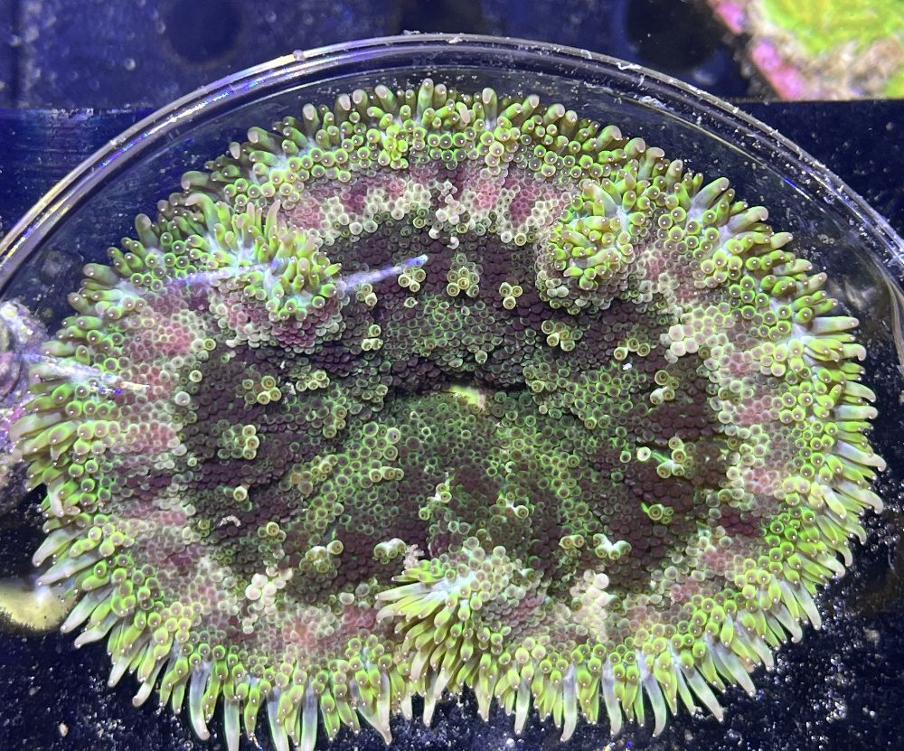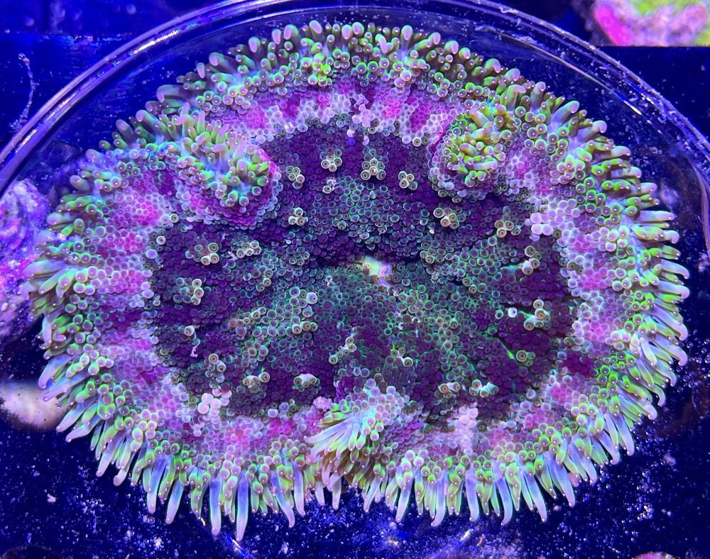 Please note that coral variations in form and color can occur in the original photo. Changes in color may also result from transport or due to the color representation on the computer screen . Our corals are lit with Radions G4 Pro and are photographed in these conditions. The colors of the animals may vary from our photos when placed in your aquarium, depending on the type of lighting used.