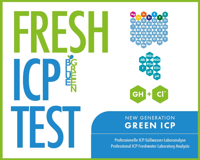 The BLUEGREEN FRESH ICP Test is our comprehensive lab test for freshwater, covering over 50 different measurement and relation values. You will receive a complete overview of macro elements, trace elements, nutrients, and pollutants.