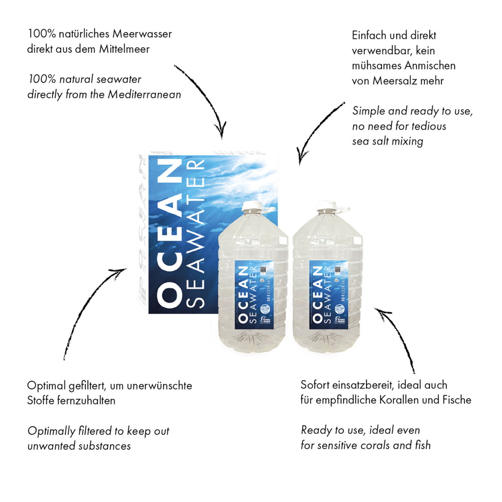 No more complicated mixing with sea salt, simple and ready to use. Whether for water changes or setting up a new reef aquarium, Fauna Marin OCEAN SEAWATER provides the right water values quickly and conveniently, allowing you to introduce even sensitive corals and fish sooner.